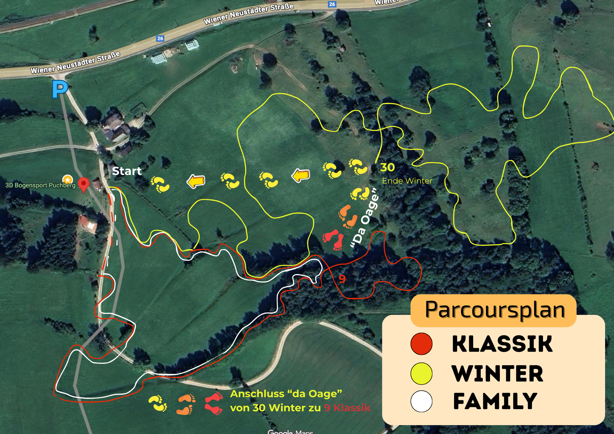 3D BS Puchberg „da Oage“ mit 53 Stationen und über 90 Zielen. Ein Zusammenschluss vom Klassik- und Winterparcours, welcher auch nur im Winter steht.